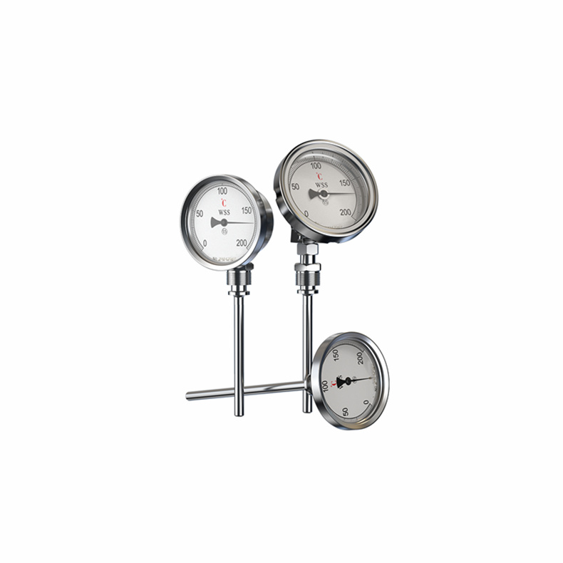 WSS型系列工業(yè)雙金屬溫度計(jì)是一種適合測(cè)量中、低溫 的現(xiàn)場檢測(cè)工業(yè)儀表。可直接測(cè)量氣體、液體的溫度,廣泛應(yīng) 用于石油、化工、船舶、機(jī)械、醫(yī)藥、電力等行業(yè),是玻璃 溫度計(jì)的替代產(chǎn)品。